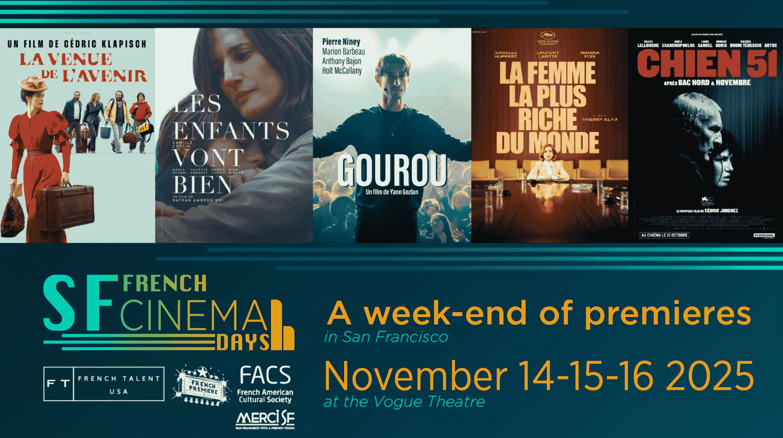 Les San Francisco French Cinema Days débarquent au Vogue Theatre pour offrir aux amoureux du cinéma français une expérience unique. Du 14 au 16 novembre, le célèbre cinéma de la ville accueillera une sélection de films francophones emblématiques. Parmi les incontournables de cette édition, ne manquez pas Gourou, dans lequel Pierre Niney incarne un gourou magnétique de l’auto-assistance, ainsi que Chien 51, un thriller futuriste avec Gilles Lellouche et Adèle Exarchopoulos.